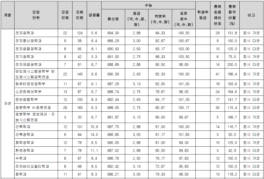 저는 이 중 자연계열 경쟁률 TOP3를 알아보려고 합니다.