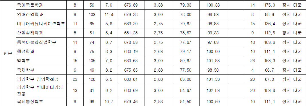 2. 2025 광운대 정시 인문계열 경쟁률 TOP3
