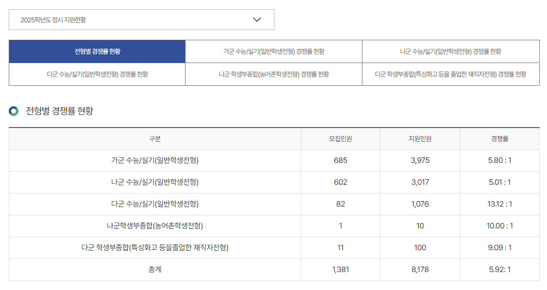 마지막으로 2025 국민대 정시 다군 경쟁률입니다.