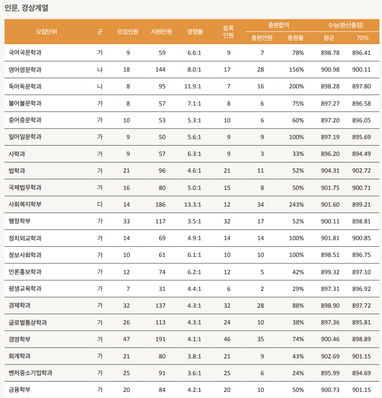 그런데 인문을 보면 대부분 가군에 몰려 있어서 지원하시는 분들은 가군을 참고하셔야겠습니다.