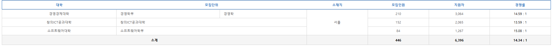 다군에는 어떤 학과, 학부가 있길래 경쟁률이 14:1 을 넘었는지 봐야할 것 같은데요.